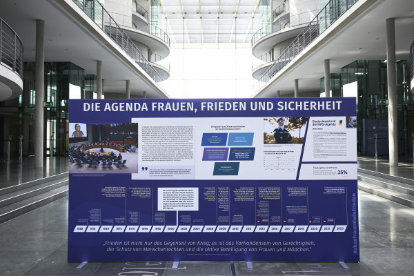 Women, peace, and security was also the theme of Peacekeeping Day 2023, jointly organized by ZIF and the German Foreign Office in the Bundestag. We designed the 12-part exhibition #ohneFrauenkeinFrieden (no peace without women), which presented the agenda with many practical examples and figures and gave female personnel a voice. To mark the 25th anniversary of UN Resolution 1325, we presented the exhibition again at the French Embassy in September.